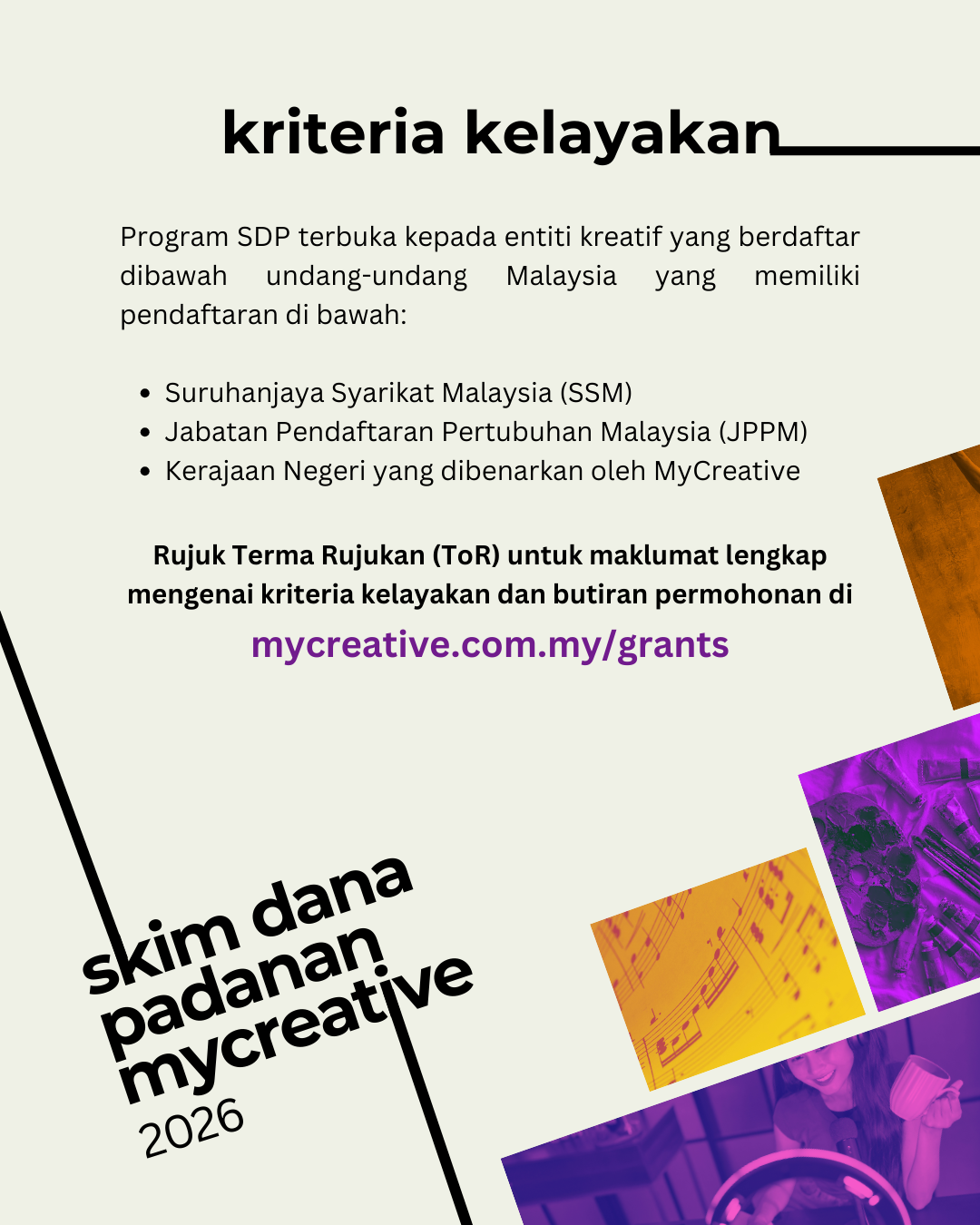 Untuk butiran lanjut atau pertanyaan, sila e-mel: sdp@mycreative.com.my
